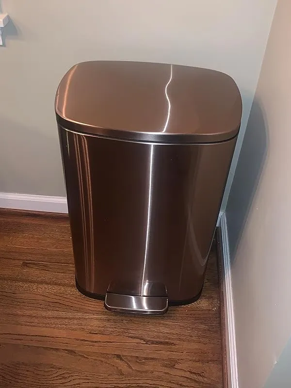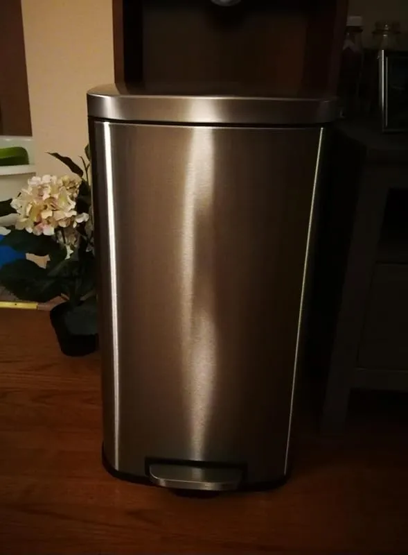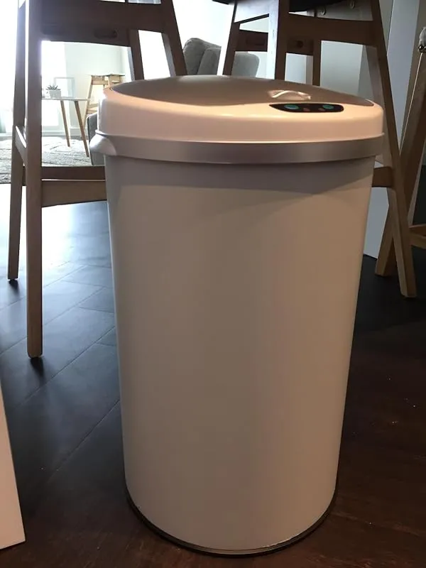 This trash can looks great when placed against white furniture and the brand has been trusted by us for over 15 years. We previously owned a stainless steel one for 15 years and passed it on to our son, who has been using it for 16 months now. While it may look slightly worn out, it still functions perfectly. Due to a disappointing experience with a different brand purchased from Walmart, we decided to get a new one from the same brand. So far, it has been performing well and we are satisfied with our purchase.