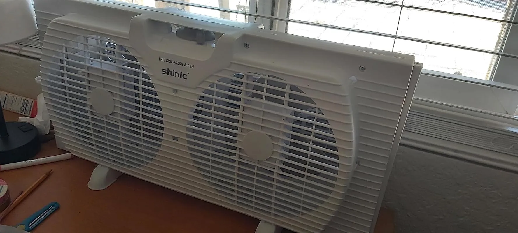 2. Shinic Reversible Airflow Window Fan – Remote Control, 3 Speeds