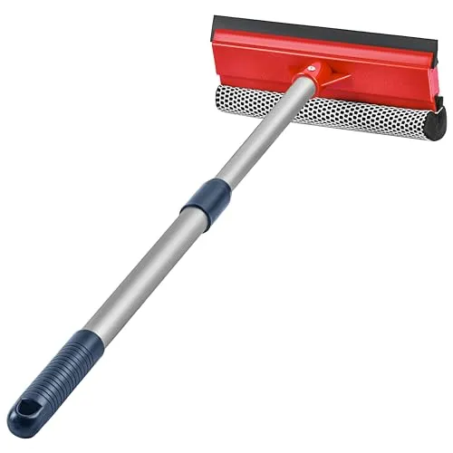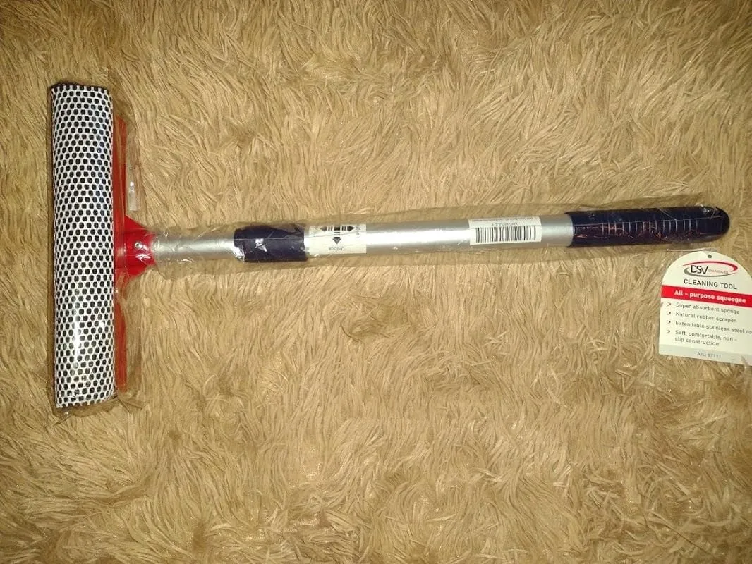 A window squeegee with an extension pole is a cleaning tool designed to make the task of cleaning windows easier and more efficient. It consists of a squeegee head, which is typically made of rubber, attached to a long pole that can be extended to reach higher windows or areas that are difficult to access.