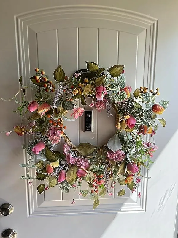 When hanging the wreath, make sure it is securely fastened to the hanger and properly balanced to avoid it becoming loose and falling off the door. Check the hanger periodically to ensure it remains secure and adjust it if necessary.